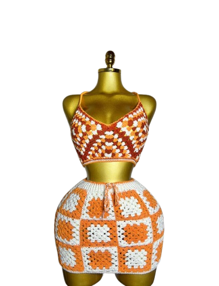 Turn heads in our Granny Square Ladies Set, featuring a bold crochet club top and matching skirt crafted in vibrant multicolour patterns. Designed to hug your curves and celebrate fearless style, this set blends retro charm with modern club energy. Playful, eye-catching, and unapologetically bold, perfect for nights out, festivals, and statement looks.